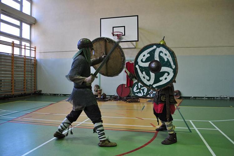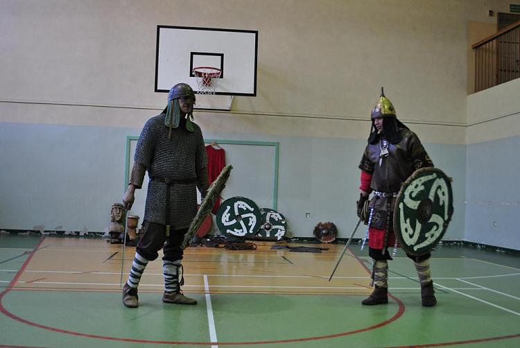 Ciekawa opowieść o władcach piastowskich, którą Panowie urozmaicali licznymi żartami, była dodatkowo połączona z pokazem strojów, uzbrojenia i przedmiotów użytkowych Słowian, mieszkających na ziemiach polskich. Uczniowie mogli brać udział podczas występów, przymierzać stroje oraz na koniec lekcji odpowiadać w podsumowującym teście, w którym w ramach nagrody jeden z przedstawicieli grupy wybijał dla zwycięzcy monetę.